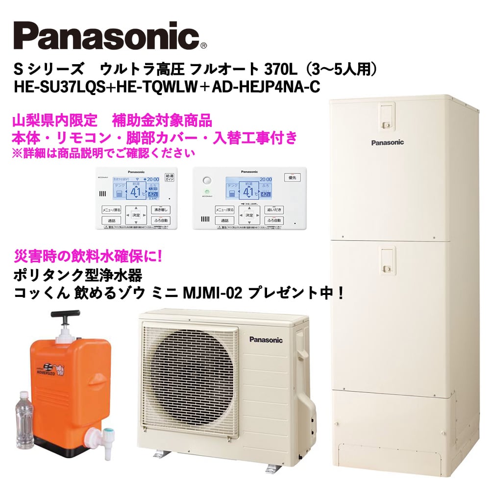 補助金対象 電気温水器からエコキュート入替工事費込 パナソニック エコキュート Sシリーズ ウルトラ高圧 フルオート HE-SU37LQS ポリタンク型浄水器 コッくん 飲めるゾウ ミニ付 地域限定