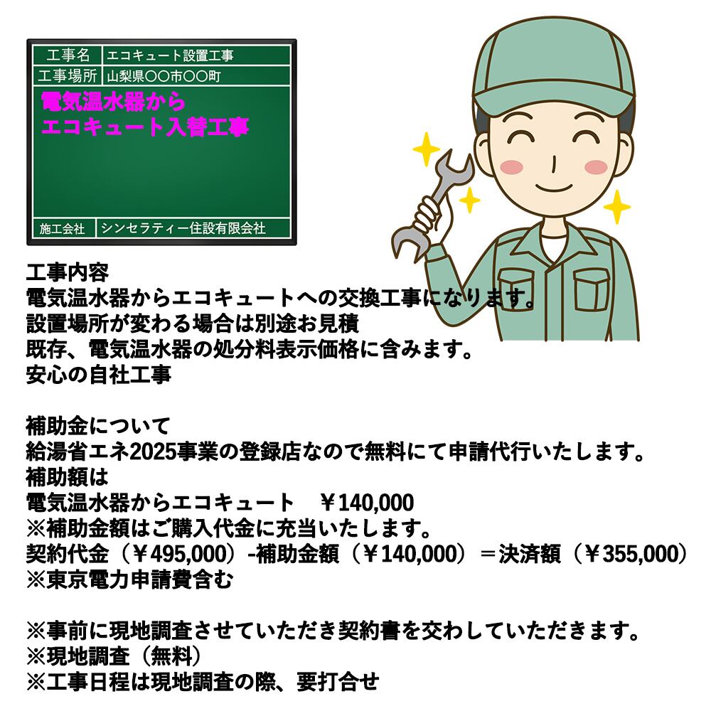 契約代金(¥495,000)-補助金額(¥140,000)=決済額(¥355,000)
