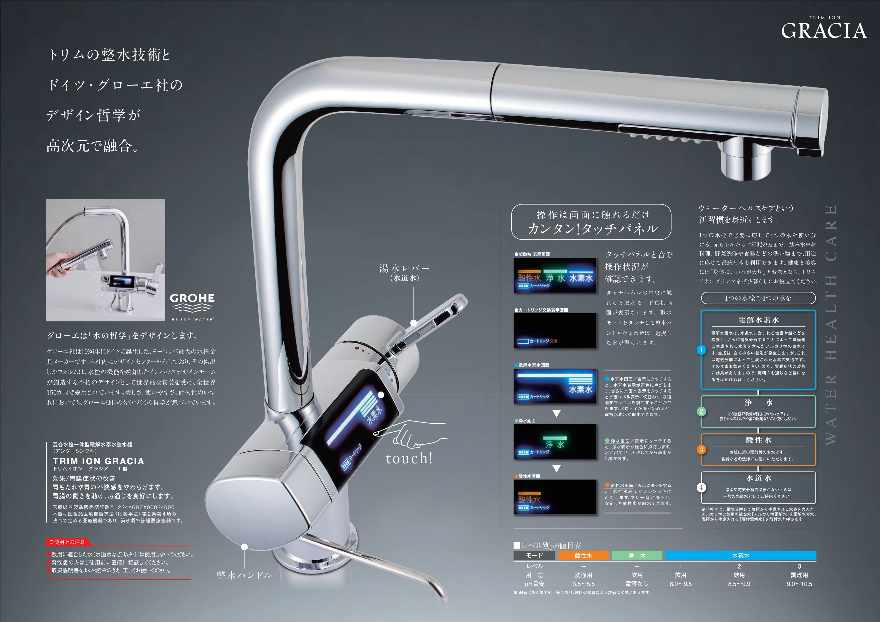 ドイツの高級水栓メーカー、グローエ社のデザイン哲学と、日本トリムの整水技術が高次元で融合。
