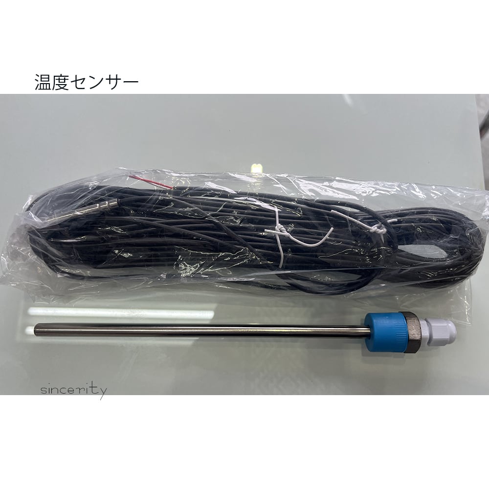コントローラー本体(アース付きコンセント)、温度センサー(20m)、センサーカバー、壁固定ビスセット2個