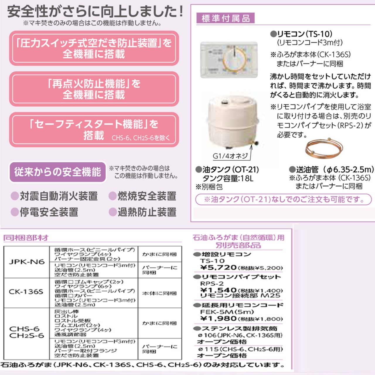 □「圧力スイッチ式空だき防止装置」を全機種に搭載