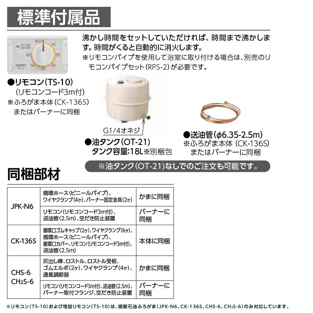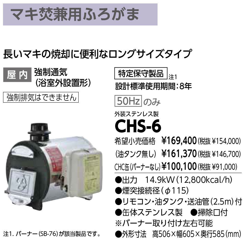 長府製作所 CHS-6 ロングタイプ セット品 石油ふろがま マキ焚兼用ふろがま