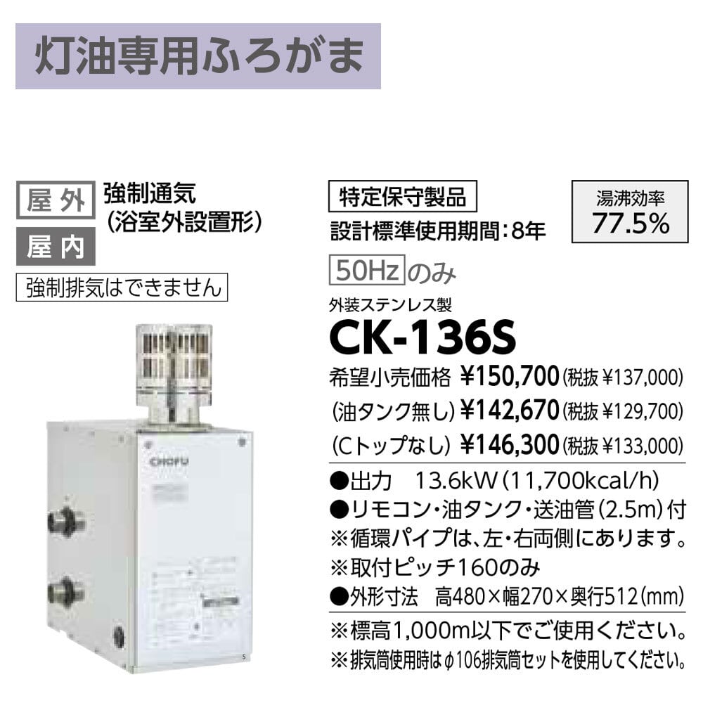 長府製作所 灯油ふろがま CK-136S Cトップ 付 油タンクなし
